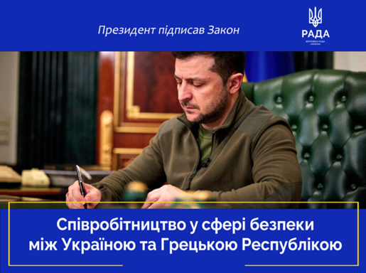 Σε μια σημαντική εξέλιξη για τις διμερείς σχέσεις Ελλάδας και Ουκρανίας, ο Πρόεδρος της Ουκρανίας Βολοντίμιρ Ζελένσκι υπέγραψε τον Νόμο περί Κύρωσης της Συμφωνίας Συνεργασίας στον Τομέα της Ασφαλείας μεταξύ της Ουκρανίας και της Ελληνικής Δημοκρατίας (αριθμός 4610-IX). Η κίνηση αυτή, που ανακοινώθηκε επίσημα από τη Βερχόβνα Ράντα, το κοινοβούλιο της Ουκρανίας, έρχεται να ενισχύσει περαιτέρω τους δεσμούς μεταξύ των δύο χωρών σε μια κρίσιμη περίοδο για την ευρωπαϊκή ασφάλεια.