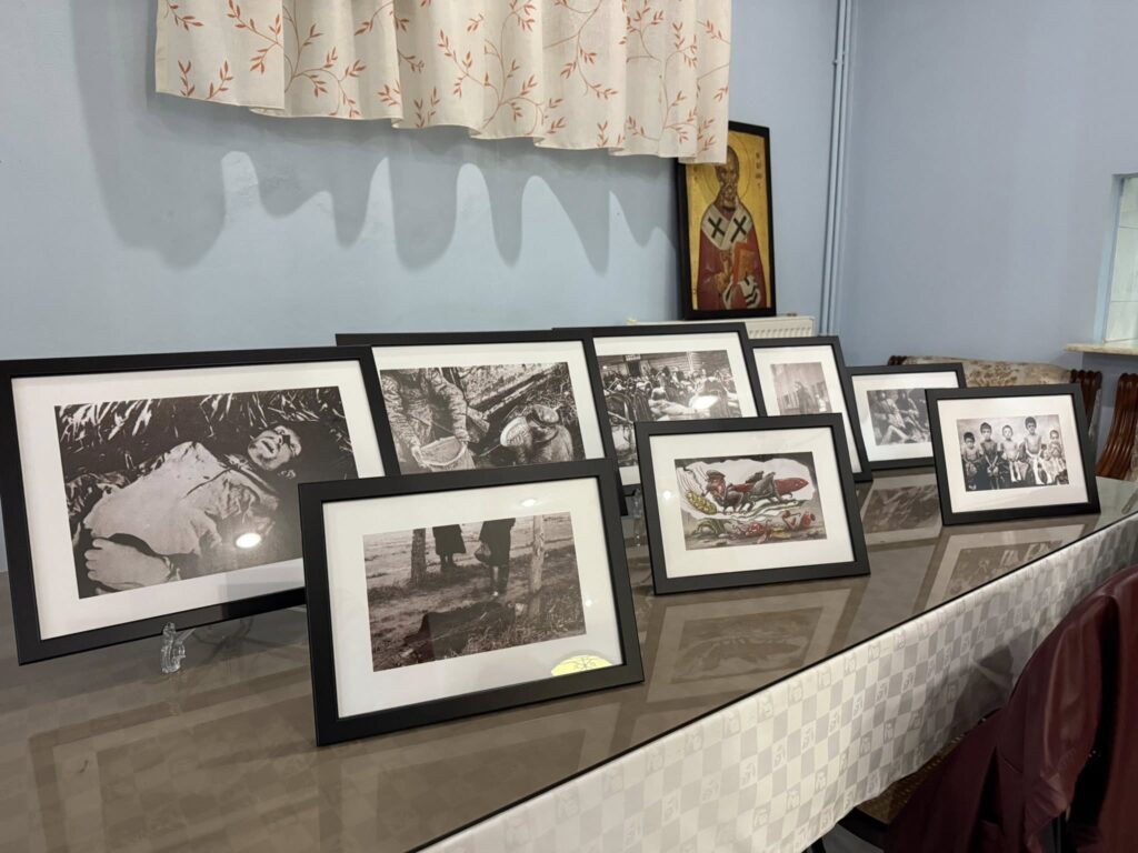 Μετά το πέρας του Τρισάγιου που τελέσθηκε στην Ουκρανική Γλώσσα από τον αιδεσιμώτατον πατέρα Βασύλ Λιλό, ακολούθησαν, στο Πνευματικό Κέντρο του Ιερού Ναού, τα εγκαίνια της Έκθεσης Φωτογραφίας με θέμα: «Γολοντομόρ: Κάθε Εικόνα Χίλιες Λέξεις» και το καθιερωμένο Συγχώριο, ενώ η εκδήλωση «έκλεισε» με απαγγελία στίχων αφιερωμένων στο αποτρόπαιο αυτό γεγονός, από μικρούς μαθητές του Σαββατιάτικου Ουκρανικού Σχολείου «Μπερεγκίνια», και με ανάλογα τραγούδια που απέδωσε η Χορωδία του Συλλόγου «Η Γη του Πελαργού».